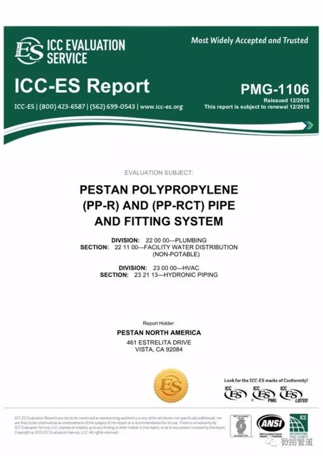 如果說(shuō)擁有"ISO認(rèn)證“以及”DVGW認(rèn)證”已經(jīng)是一家合格的德國(guó)管路企業(yè)了,那么擁有”美國(guó)ICC-ES”認(rèn)證可謂是含金量十足的加分項(xiàng),ICC-ES是美國(guó)國(guó)際法規(guī)委員會(huì)評(píng)估服務(wù)的簡(jiǎn)稱(chēng),是一個(gè)專(zhuān)注于建筑安全的非營(yíng)利機(jī)構(gòu),ICC-ES的評(píng)估歷史已經(jīng)超過(guò)了70年。目前主要針對(duì)于建筑產(chǎn)品,建筑組件,建筑方法和建筑材料的評(píng)估。目前全球有超過(guò)50,000的組織成員。該認(rèn)證可適用于美國(guó)全境,并且在美國(guó)建筑行業(yè)認(rèn)可度極高,眾所周知美國(guó)本土是沒(méi)有管道生產(chǎn)商的,其供應(yīng)全部依賴(lài)進(jìn)口,然而想要進(jìn)入美國(guó)市場(chǎng)必然要經(jīng)過(guò)其嚴(yán)苛的質(zhì)量審查,在歐洲只有兩家管道企業(yè)通過(guò)了其審查,德國(guó)微朗就名列其中,并且微朗也擁有著含金量頗高的ICC-ES認(rèn)證。