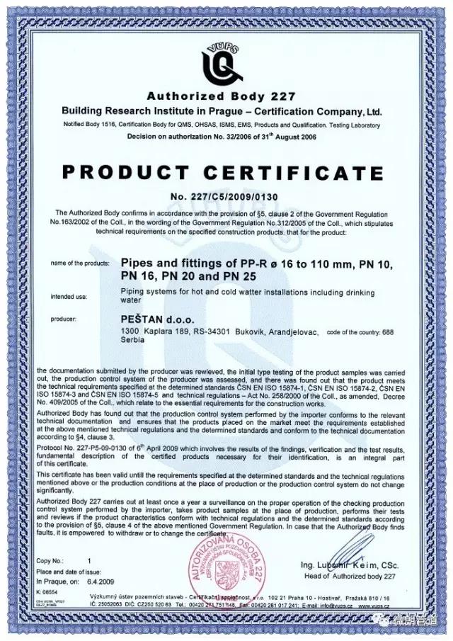 捷克國(guó)家建筑研究所VUPS認(rèn)證