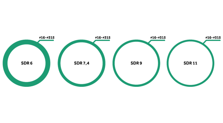 Fluidtherm USA管材和管件的直徑從Ø16 mm到Ø315 mm。管道采用SDR Class 6,SDR 7.4 SDR 9,SDR 11或具有不同壁厚的產(chǎn)品,具體取決于目的和所需的內(nèi)部壓力和流體溫度的阻力。在選擇產(chǎn)品之前,我們建議您在目錄中查看表格或咨詢我們的技術(shù)支持。