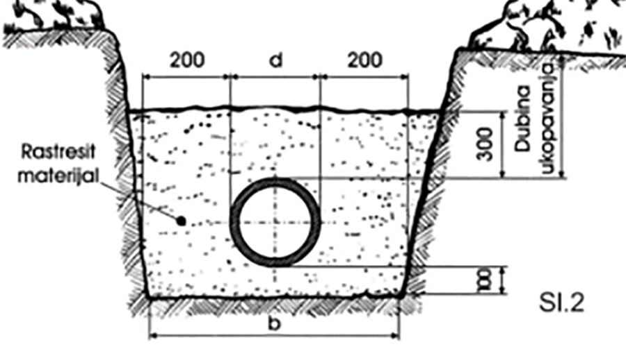 溝槽的寬度必須足以根據(jù)規(guī)定進(jìn)行壓實(shí)。b = d + 2×200