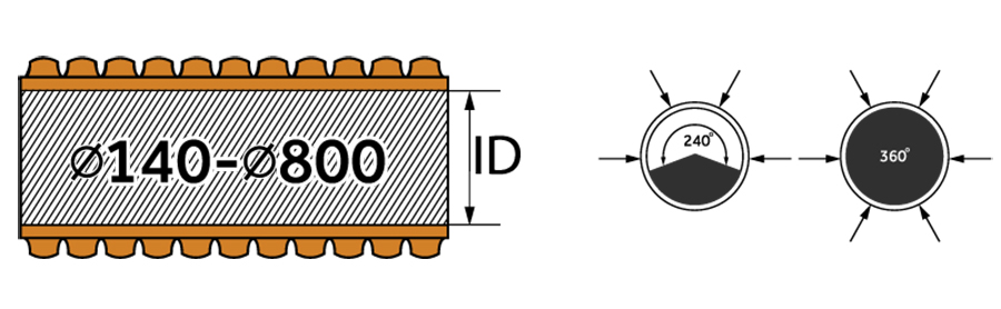 PP波紋排水管可在以下的直徑來獲得:ØID 140,ID 200Ø,直徑ID 250,ID 300Ø,直徑ID 400,ID 500Ø,直徑ID 600,ID 800 O。