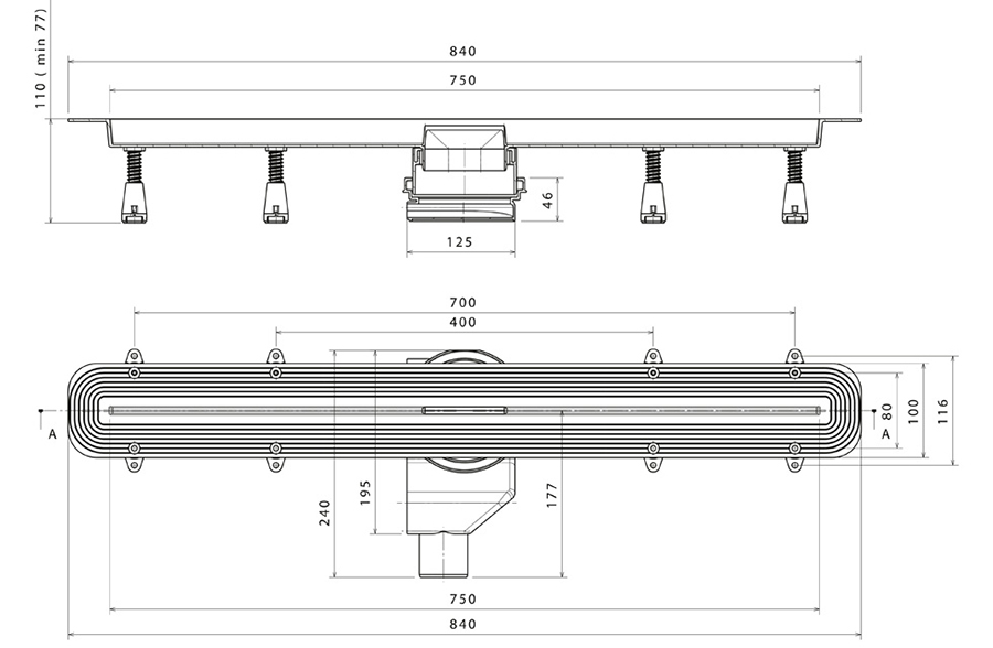 這里超薄線是在尺寸650毫米,750毫米,850毫米,950毫米,1050毫米和1150毫米具有圖案化從AISI 304不銹鋼光柵廣場可用。該網(wǎng)格也屬于類容量的和已設(shè)定K3來調(diào)整漏極到地磚。最小高度是77毫米,最大流速為48L /分鐘的項目有助于為50mm25毫米水性和出口直徑的螺柱的超低旋轉(zhuǎn)底座。該模型可以無需拆卸電網(wǎng)所以很容易清潔,并包含在框中需要給客戶安裝都進行清潔。該模型也是一個黃金版的24卡可用。