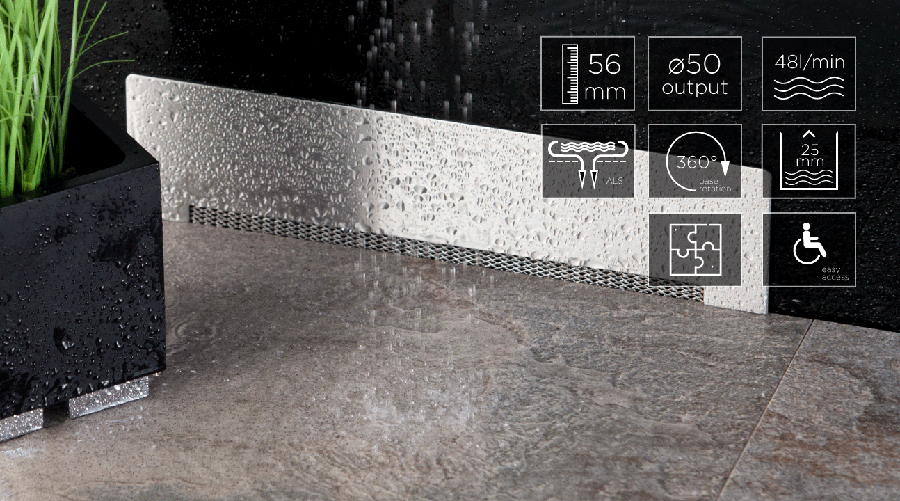 Peštan公司耗盡你的墻在一個(gè)尺寸(300毫米)和2個(gè)不同的設(shè)計(jì)光柵(不銹鋼和金/ 24K鍍金)交付。我們與室水渠漏水(安裝者在安裝前捅在室孔)的情況下的接縫密封水的潛在侵蝕可能會再次返回到漏極生產(chǎn)。該壁具有一漏極DN50毫米水平基座,讓我們的能力•具有高達(dá)48升/分鐘的流動。最低高度/深度58毫米/105毫米這使得我們的墻的模型水渠100%防漏和裝修完美的模型。