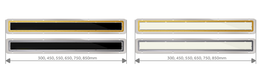 Peštan公司其高級線玻璃型號在6個不同的長度(300毫米,為450mm,在550mm650毫米,750毫米,850毫米)和4條不同設(shè)計的格柵(黑色玻璃/不銹鋼,白玻璃/不銹鋼,黑色玻璃/金,白玻璃/金制造)。這是在1,其中在同一個系統(tǒng)模型可以與黑色或白色的鋼化玻璃或不銹鋼/金色棒中使用的2。高級型具有DN50毫米水平基座這使我們有機會具有高達48升/分鐘的流速。最低高度只有52毫米這讓我們“優(yōu)質(zhì)玻璃,”沉在世界上最低的與DN50毫米輸出。